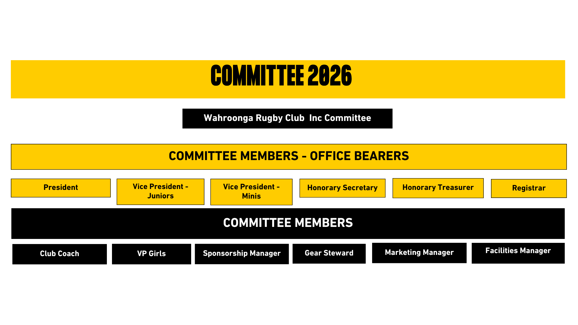 Committee Roles declared open for the AGM are made available to Members.
