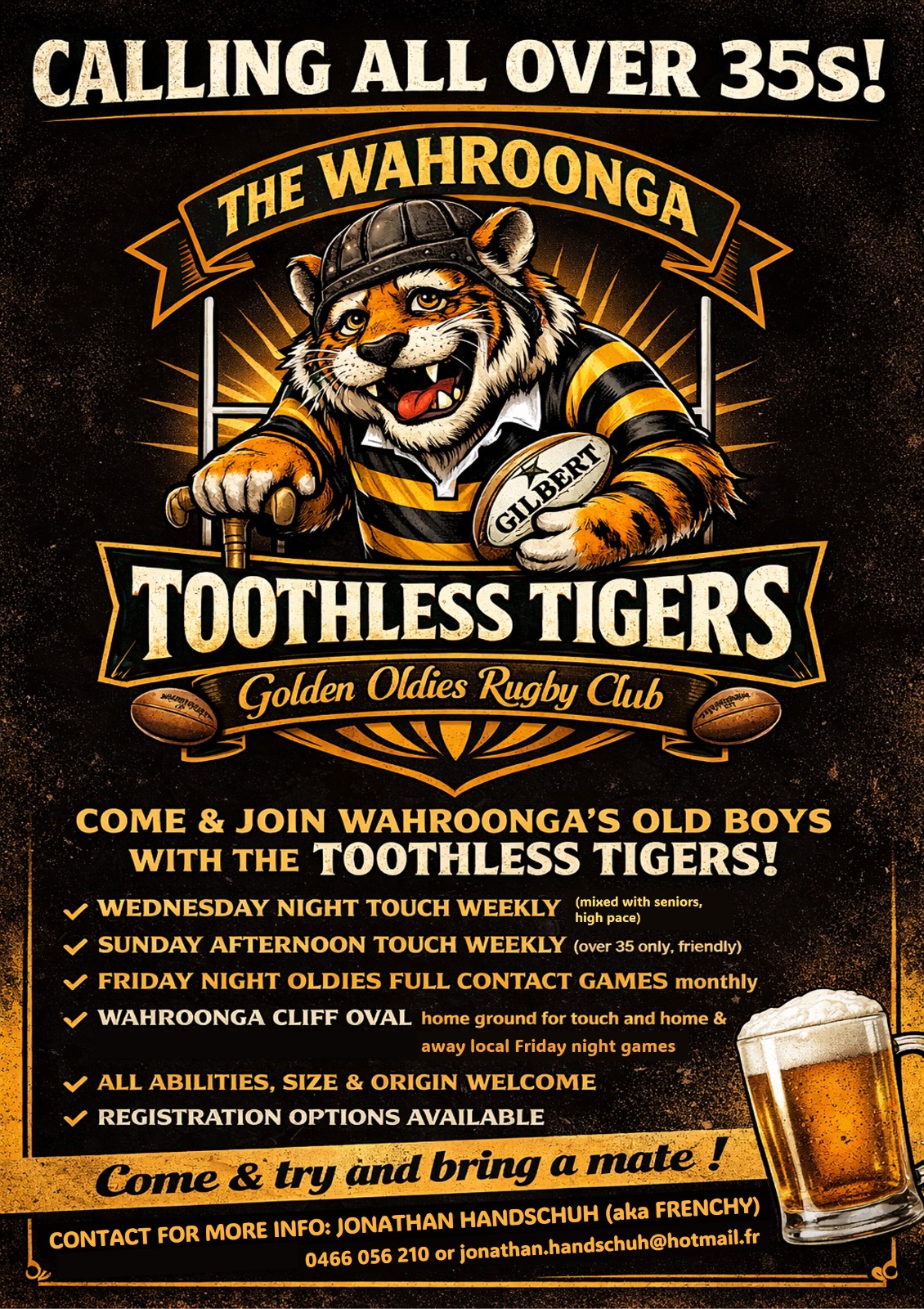 The Toothless Tigers are part of Wahroonga Rugby Club, made up of parents, former players, and coaches who love the game and enjoy giving back to the junior club.