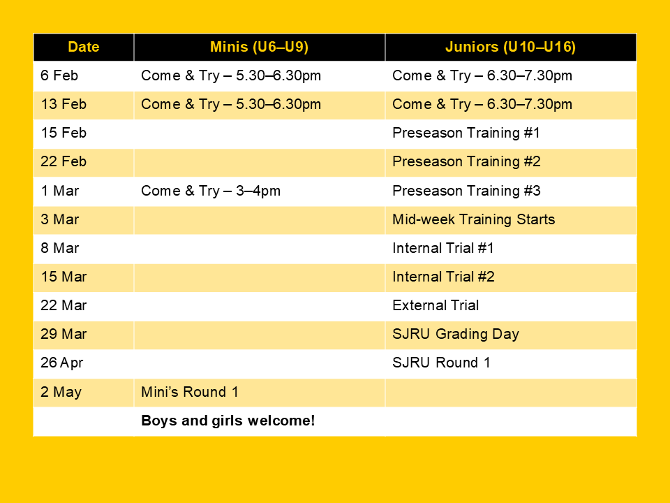 Juniors Come & Try Dates (U10–U16)