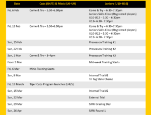 Juniors Pre Season Clinic for registered players